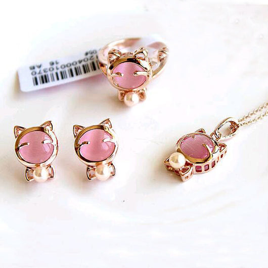 3 PIECES CAT EYES RING/NECKLACE/EARRINGS!